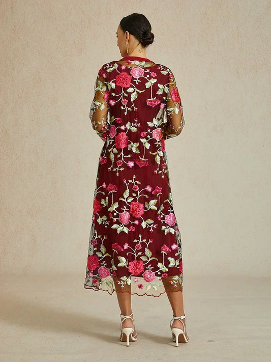 Embroidered Lace Mesh Jacket and A-Line Dress Set