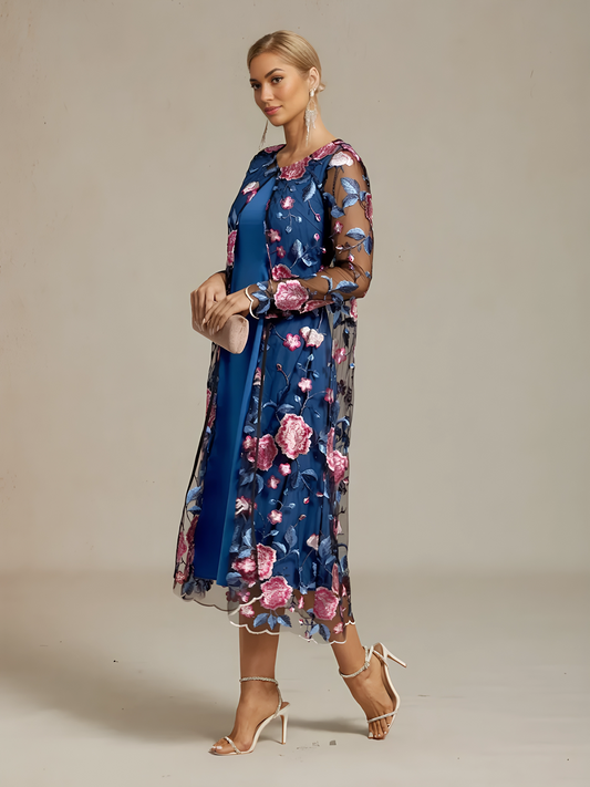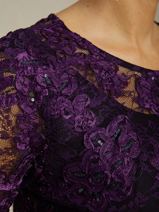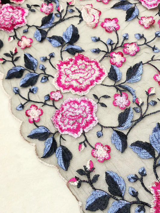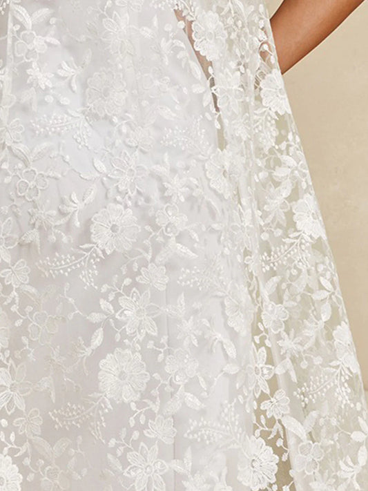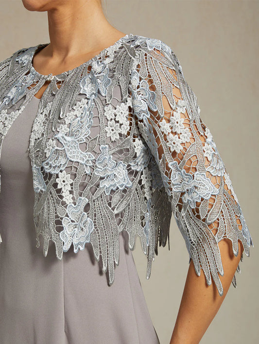 Floral Embroidered Lace Jacket with Rhinestone Button