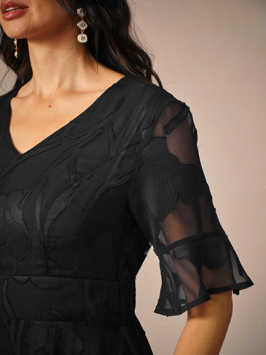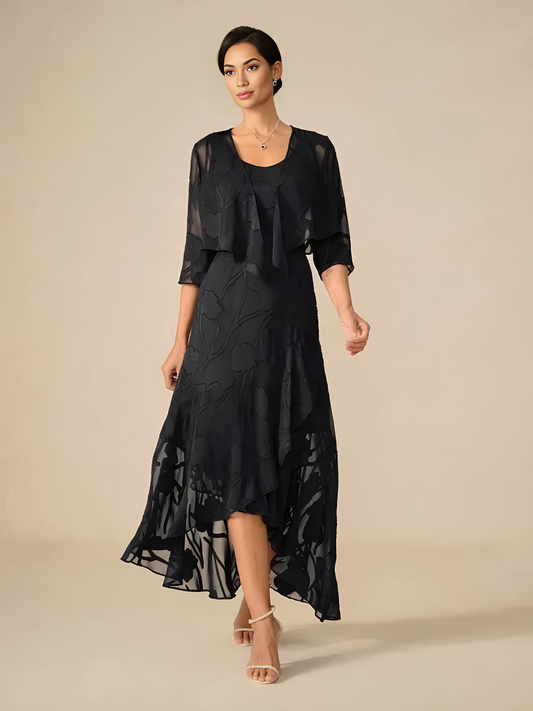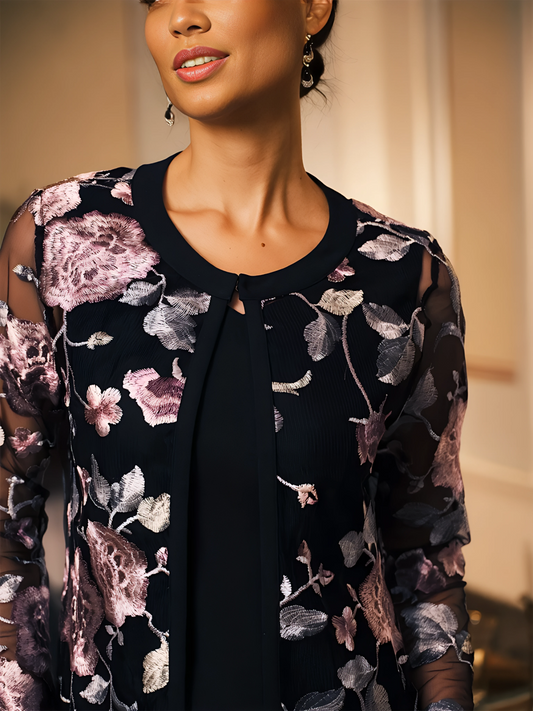 • Flowing Chiffon Overlay – adds graceful movement and subtle drama