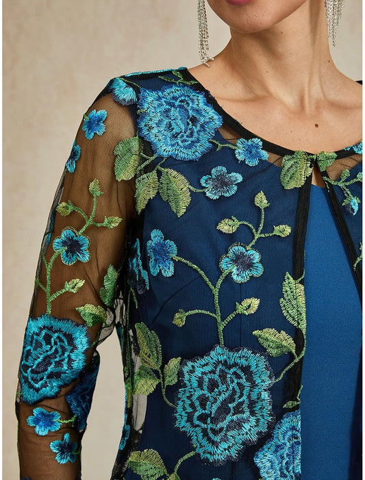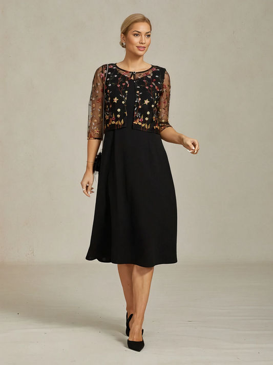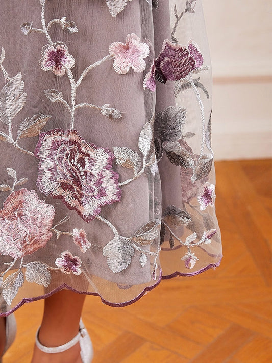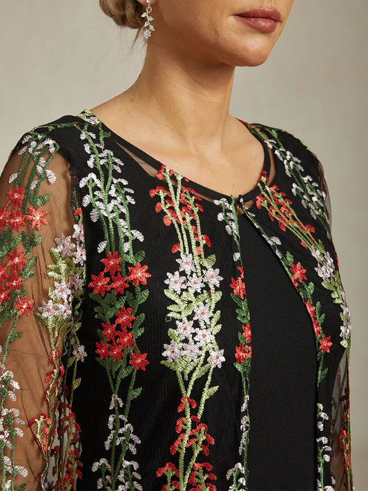 Mesh Lace Embroidered Floral Dress Set